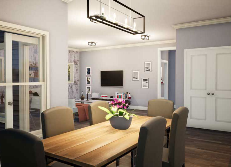 Interior renderings shown are staged. Interior selections & options are offered by the developer. Interior choices may increase your cost over the model base price.